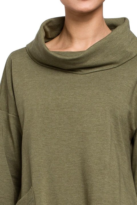 Bluza damska oversize z kominem i wiązaniem z tyłu khaki me260