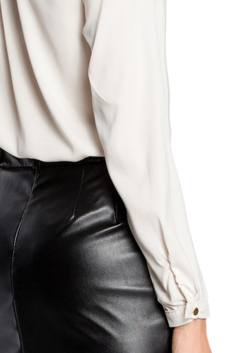 Bluzka damska koszulowa ze stójką i długim rękawem beżowa me063