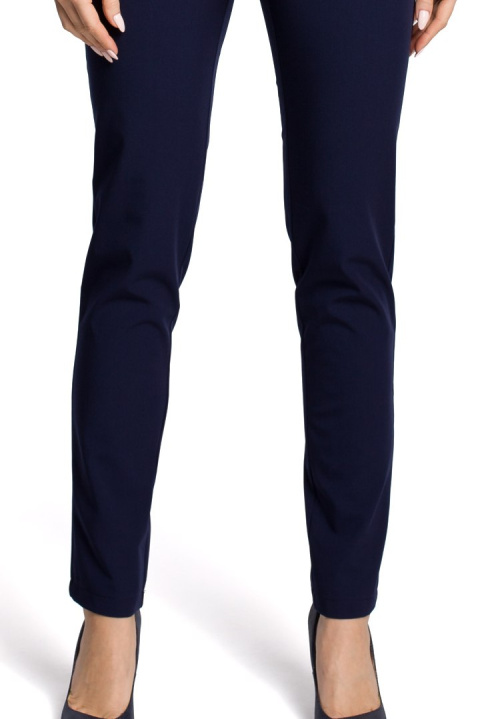 Spodnie damskie chinosy z wysokim stanem i paskiem granatowe me363