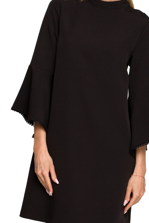 Sukienka midi trapezowa fason A szeroki rękaw 3/4 czarnaimage